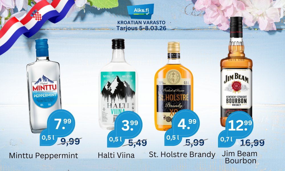 Suosittuja tuotteita AlePure Divine Vodka 37.5% 3 l BIB 30.99€ Alkuperäinen hinta oli: 30.99€.23.99€Nykyinen hinta on: 23.99€. - Pure Divine Vodka 37.5% 3 l BIB määrä + Lisää ostoskoriin AleDr. Zenzen Riesling 11.5% 3 l BIB 10.99€ Alkuperäinen hinta oli: 10.99€.9.99€Nykyinen hinta on: 9.99€. - Dr. Zenzen Riesling 11.5% 3 l BIB määrä + Lisää ostoskoriin AleHartwall Hard Seltzer Raspberry 4.5% 24×0.33 l Best Before: 10.04.2026 25.99€ Alkuperäinen hinta oli: 25.99€.22.99€Nykyinen hinta on: 22.99€. - Hartwall Hard Seltzer Raspberry 4.5% 24x0.33 l Best Before: 10.04.2026 määrä + Lisää ostoskoriin AleHartwall GLÖGG Original Long Drink 5.5% 24×0.33 l 29.99€ Alkuperäinen hinta oli: 29.99€.17.99€Nykyinen hinta on: 17.99€. - Hartwall GLÖGG Original Long Drink 5.5% 24x0.33 l määrä + Lisää ostoskoriin AleKoff LIME & VODKA Long Drink 5.5% 24×0.33 l 23.99€ Alkuperäinen hinta oli: 23.99€.19.99€Nykyinen hinta on: 19.99€. - Koff LIME & VODKA Long Drink 5.5% 24x0.33 l määrä + Lisää ostoskoriin AleA. Le Coq G:N WATERMELON Long Drink 5.5% 24×0.33 l 17.99€ Alkuperäinen hinta oli: 17.99€.15.99€Nykyinen hinta on: 15.99€. - A. Le Coq G:N WATERMELON Long Drink 5.5% 24x0.33 l määrä + Lisää ostoskoriin AleHartwall Hard Seltzer Lemon 4.5% 24×0.33 l Best Before: 16.04.2026 25.99€ Alkuperäinen hinta oli: 25.99€.22.99€Nykyinen hinta on: 22.99€. - Hartwall Hard Seltzer Lemon 4.5% 24x0.33 l Best Before: 16.04.2026 määrä + Lisää ostoskoriin AleHartwall GIN & LEMONADE Original Long Drink 5.5% 24×0.33l Best Before: 30.03.2026 29.99€ Alkuperäinen hinta oli: 29.99€.16.99€Nykyinen hinta on: 16.99€. - Hartwall GIN & LEMONADE Original Long Drink 5.5% 24x0.33l Best Before: 30.03.2026 määrä + Lisää ostoskoriin AleHalti Viina 32% 10×0.5 l PET 54.90€ Alkuperäinen hinta oli: 54.90€.35.99€Nykyinen hinta on: 35.99€. - Halti Viina 32% 10x0.5 l PET määrä + Lisää ostoskoriin Punaviini Näytä kaikki AleSun of Africa Cape Red 13% 3 l BIB 7.99€ Alkuperäinen hinta oli: 7.99€.6.99€Nykyinen hinta on: 6.99€. - Sun of Africa Cape Red 13% 3 l BIB määrä + Lisää ostoskoriin AleMakulu Cape Red 12.5% 3 l BIB 8.99€ Alkuperäinen hinta oli: 8.99€.6.99€Nykyinen hinta on: 6.99€. - Makulu Cape Red 12.5% 3 l BIB määrä + Lisää ostoskoriin Babić 12.5% 0.75 l 11.99€ - Babić 12.5% 0.75 l määrä + Lisää ostoskoriin Piccini Appassimento Puglia IGT 15% 3 l BIB 16.99€ - Piccini Appassimento Puglia IGT 15% 3 l BIB määrä + Lisää ostoskoriin JP. Chenet Cabernet Syrah 12.5% 3 l BIB 13.99€ - JP. Chenet Cabernet Syrah 12.5% 3 l BIB määrä + Lisää ostoskoriin South Cape Red 12.5% 3 l BIB 7.99€ - South Cape Red 12.5% 3 l BIB määrä + Lisää ostoskoriin Gran San-Tiago Merlot 13.5% 3 l BIB 9.99€ - Gran San-Tiago Merlot 13.5% 3 l BIB määrä + Lisää ostoskoriin AleCrocodile Creek Shiraz Cabernet Sauvignon 13.5% 3 l BIB 10.99€ Alkuperäinen hinta oli: 10.99€.9.99€Nykyinen hinta on: 9.99€. - Crocodile Creek Shiraz Cabernet Sauvignon 13.5% 3 l BIB määrä + Lisää ostoskoriin Gato Negro Merlot 13% 0.75 l 4.99€ Lisää ostoskoriin Gran San-Tiago Merlot Shiraz 13.5% 3 l BIB 9.99€ - Gran San-Tiago Merlot Shiraz 13.5% 3 l BIB määrä + Lisää ostoskoriin Valkoviini Näytä kaikki AleGato Negro Sauvignon Blanc 12% 0.75 l 4.99€ Alkuperäinen hinta oli: 4.99€.3.99€Nykyinen hinta on: 3.99€. - Gato Negro Sauvignon Blanc 12% 0.75 l määrä + Lisää ostoskoriin Black Tower Fruity White 8.5% 3 l BIB 11.99€ - Black Tower Fruity White 8.5% 3 l BIB määrä + Lisää ostoskoriin Gato Negro Chardonnay 13% 0.75 l 4.99€ - Gato Negro Chardonnay 13% 0.75 l määrä + Lisää ostoskoriin Jean Biecher & Fils Alsace Pinot Blanc 12.5% 0.75 l 5.99€ - Jean Biecher & Fils Alsace Pinot Blanc 12.5% 0.75 l määrä + Lisää ostoskoriin Vina Maipo Chardonnay 13% 0.75 l 3.99€ - Vina Maipo Chardonnay 13% 0.75 l määrä + Lisää ostoskoriin AleBarefoot Pinot Grigio California 12.5% 0.75 l 7.99€ Alkuperäinen hinta oli: 7.99€.6.49€Nykyinen hinta on: 6.49€. - Barefoot Pinot Grigio California 12.5% 0.75 l määrä + Lisää ostoskoriin Piccini Italian Origins Pinot Grigio DOC 12.5% 0.75 l 4.99€ - Piccini Italian Origins Pinot Grigio DOC 12.5% 0.75 l määrä + Lisää ostoskoriin AleNeon Pinot Grigio 13% 3 l BIB 9.99€ Alkuperäinen hinta oli: 9.99€.8.49€Nykyinen hinta on: 8.49€. - Neon Pinot Grigio 13% 3 l BIB määrä + Lisää ostoskoriin AleNeon Chardonnay 11.5% 3 l BIB 8.99€ Alkuperäinen hinta oli: 8.99€.7.79€Nykyinen hinta on: 7.79€. - Neon Chardonnay 11.5% 3 l BIB määrä + Lisää ostoskoriin Andes Chardonnay 12% 0.75 l 2.99€ - Andes Chardonnay 12% 0.75 l määrä + Lisää ostoskoriin Uudet Tuotteet Näytä kaikki Happy Joe Dry Apple Cider 4.7% 24×0.33 l 18.99€ - Happy Joe Dry Apple Cider 4.7% 24x0.33 l määrä + Lisää ostoskoriin AleSomersby Apple 4.5% 24×0.33 l 18.99€ Alkuperäinen hinta oli: 18.99€.17.99€Nykyinen hinta on: 17.99€. - Somersby Apple 4.5% 24x0.33 l määrä + Lisää ostoskoriin Happy Joe Cloudy Apple Cider 4.7% 24×0.33 l 18.99€ - Happy Joe Cloudy Apple Cider 4.7% 24x0.33 l määrä + Lisää ostoskoriin Happy Joe Extra Dry Pear Cider 4.5% 24×0.33 l 18.99€ - Happy Joe Extra Dry Pear Cider 4.5% 24×0.33 l määrä + Lisää ostoskoriin AleSomersby Pear 4.5% 24×0.33 l 18.99€ Alkuperäinen hinta oli: 18.99€.17.99€Nykyinen hinta on: 17.99€. - Somersby Pear 4.5% 24x0.33 l määrä + Lisää ostoskoriin AleIbis XO French Brandy 36% 1 l 21.99€ Alkuperäinen hinta oli: 21.99€.18.99€Nykyinen hinta on: 18.99€. - Ibis XO French Brandy 36% 1 l määrä + Lisää ostoskoriin AleViin 40% 0.5 l PET 5.99€ Alkuperäinen hinta oli: 5.99€.5.29€Nykyinen hinta on: 5.29€. - Viin 40% 0.5 l PET määrä + Lisää ostoskoriin AleClub Aruba White Rum 37.5% 0.5 l PET 5.99€ Alkuperäinen hinta oli: 5.99€.5.39€