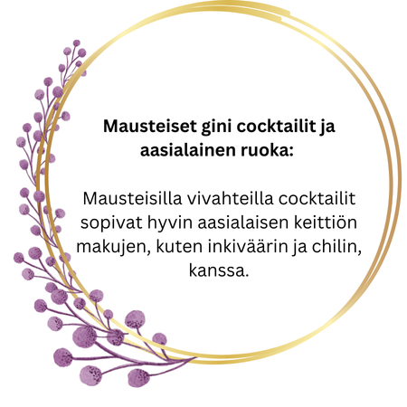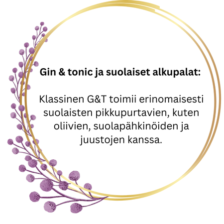 Vaikka gin tunnetaan parhaiten cocktaileistaan, se sopii myös loistavasti erilaisten ruokien kanssa. Tässä muutamia suosituksia: