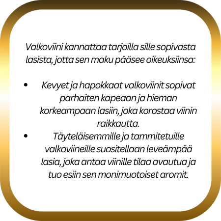 Valkoviinin oikeaoppinen tarjoilu ja säilytys takaavat, että viini pysyy raikkaana ja nautittavana. Muista viilennys, sopiva viinilasi ja asianmukainen säilytys, niin saat parhaan mahdollisen makuelämyksen.